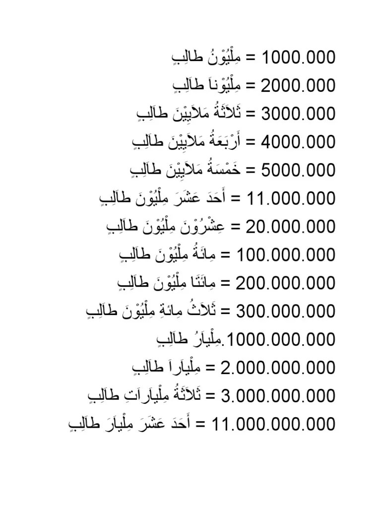 1000, 2000, 3000, 4000, 5000, 6000, 7000, 8000, 9000, 10000. Bagaimana kamu mengucapkan dalam bahasa arab?
